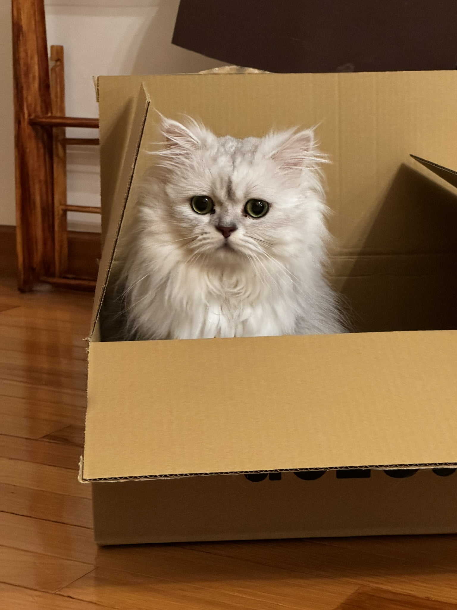 amazonから新しい段ボールが届くと必ずと言っていいほど中に入ってテイスティング(?)をします。今日の入り心地はどうでしょうかね?