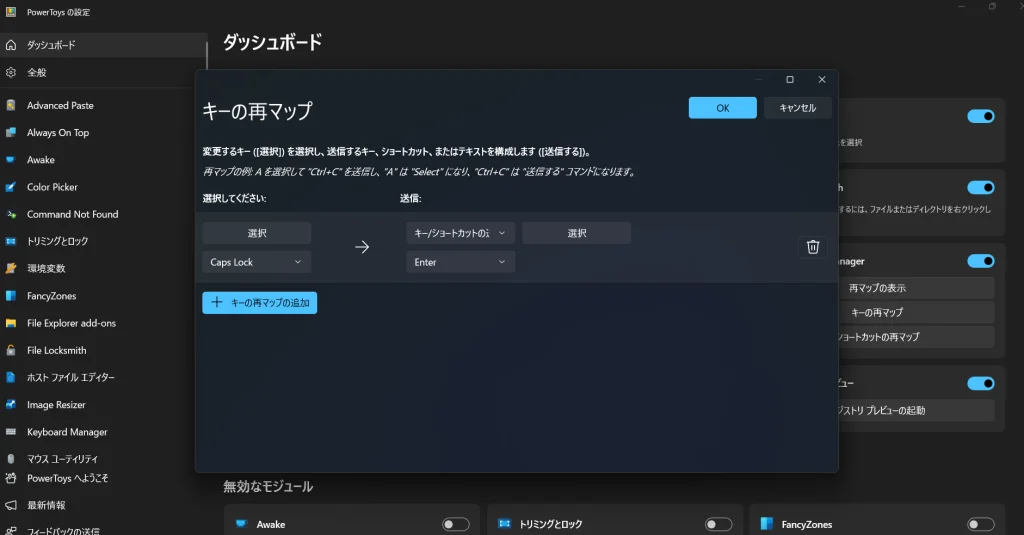 キーボードのキーの設定も変更することが可能です。
